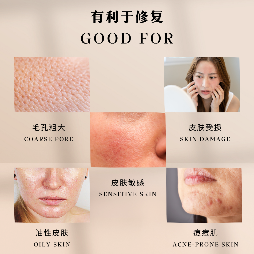 - Adjust various unhealthy skin types, improve thin, rough, and sensitive skin, and restore smoothness and smoothness to the skin.