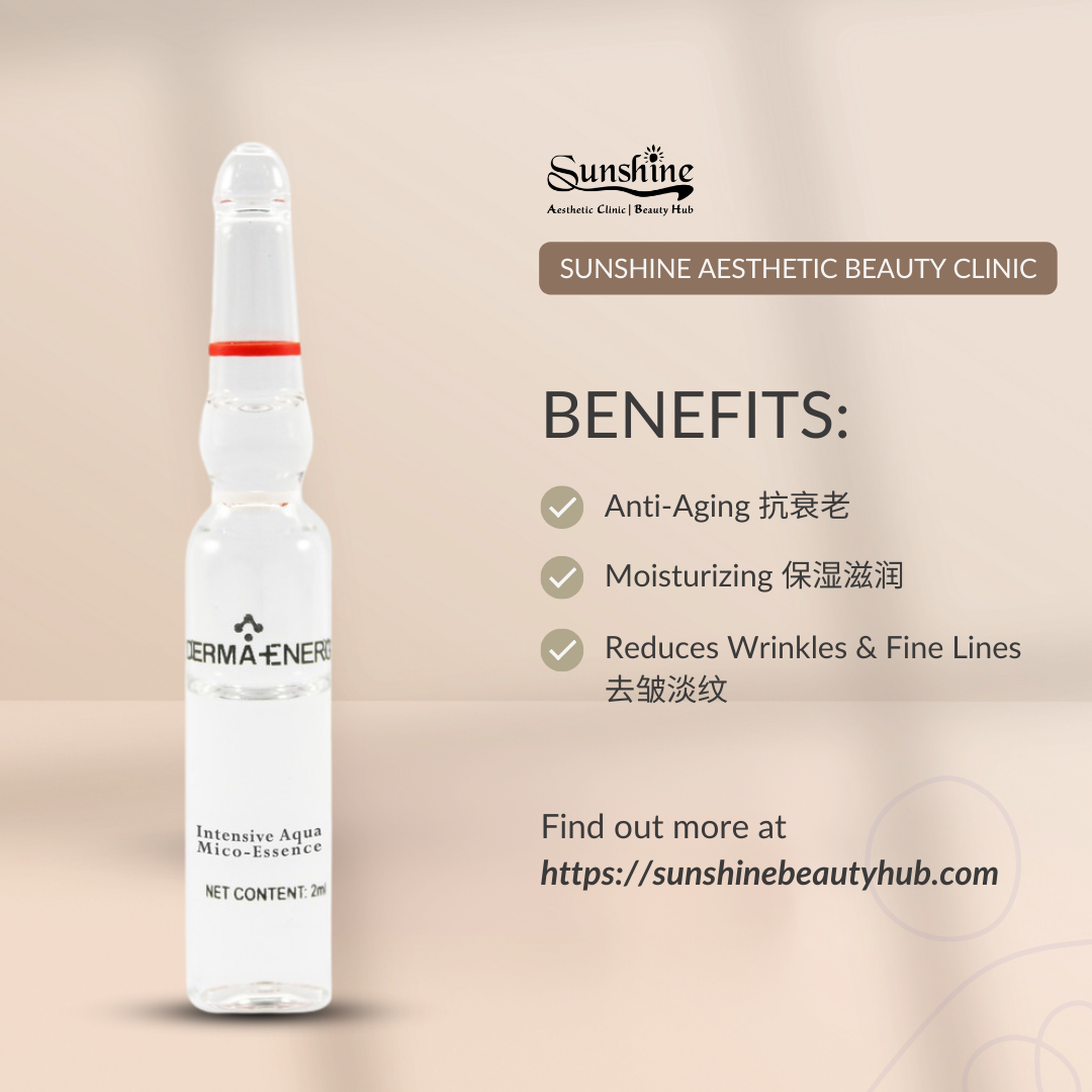 Intensive Aqua Mico-Essence Serum rich in hyaluronic acid, molecules of hyaluronic acid, and other active ingredients which allow easy absorption by the skin.