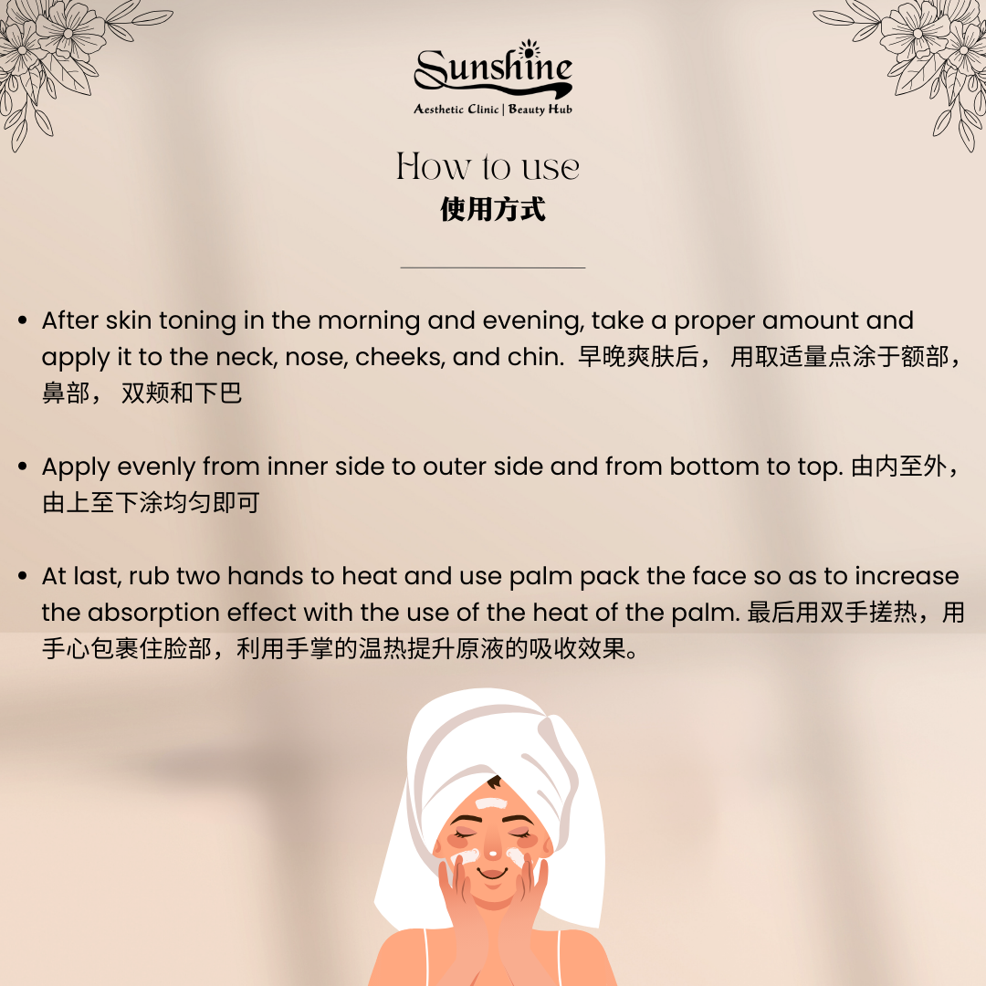 1. After skin toning in the morning and evening, take a proper amount and apply it to the neck, nose, cheeks, and chin.
