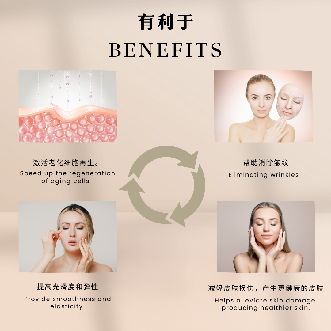 ✅ 帮助足进弹性纤维细胞的发育及增强其功能并激活老化细胞再生。